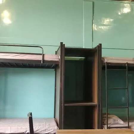 This hostel has a kitchen equipped with a microwave oven, a fridge and a toaster.